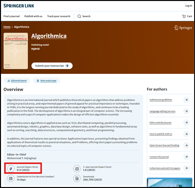 インパクト ファクターは、ジャーナルのホームページの [概要] セクションに表示されます。